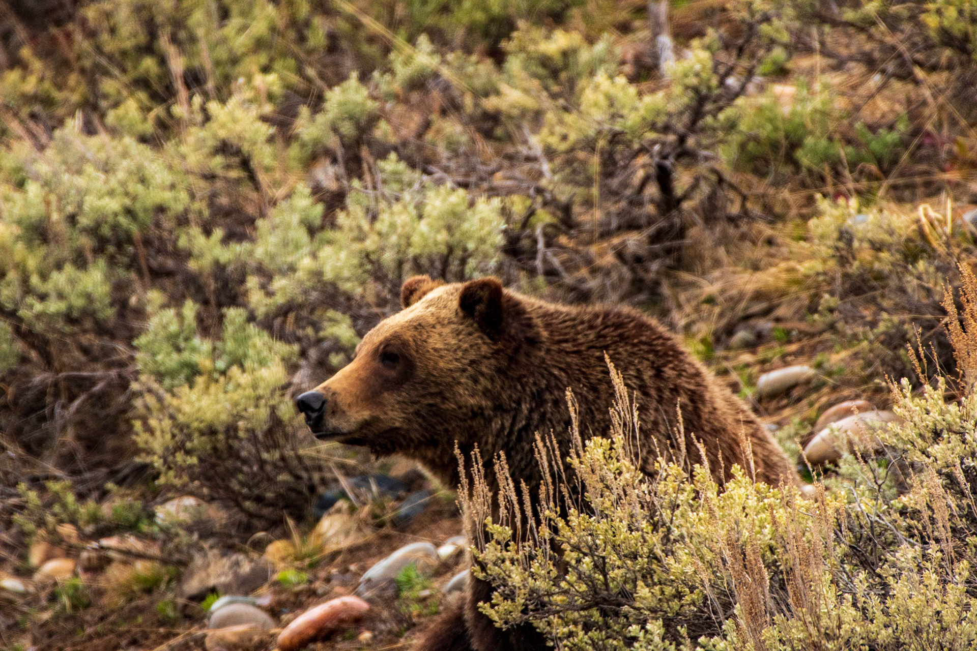Grizzly Bear looking for food (Grand Teton National Park)